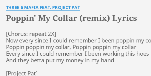 Poppin My Collar Remix Lyrics By Three 6 Mafia Feat Project Pat Now Every Since I